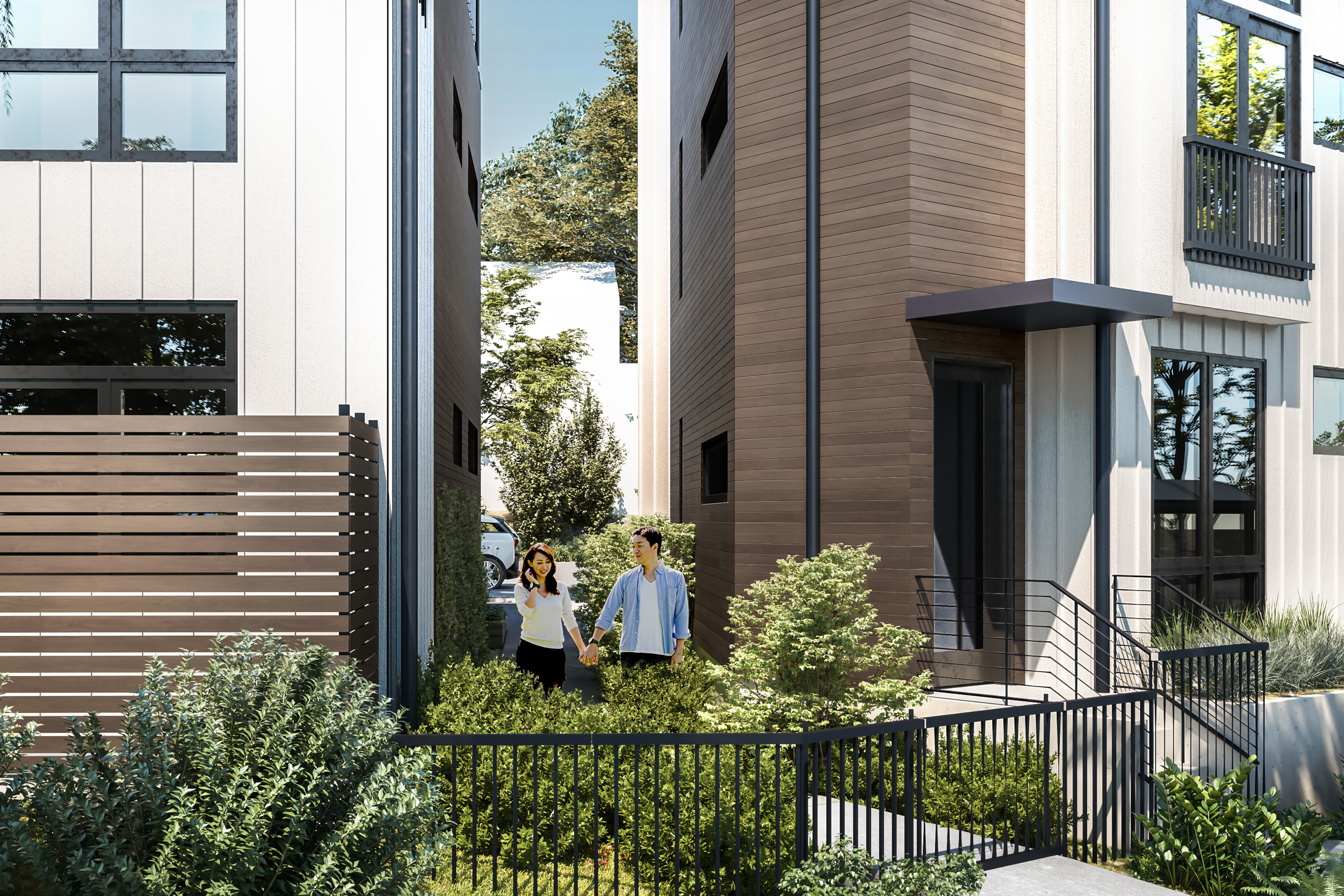 Even the back of these units is high on aesthetics, offering an elegant, holistic, neighborly experience. Carkeek Park Townhomes | Rendering of proposed project.